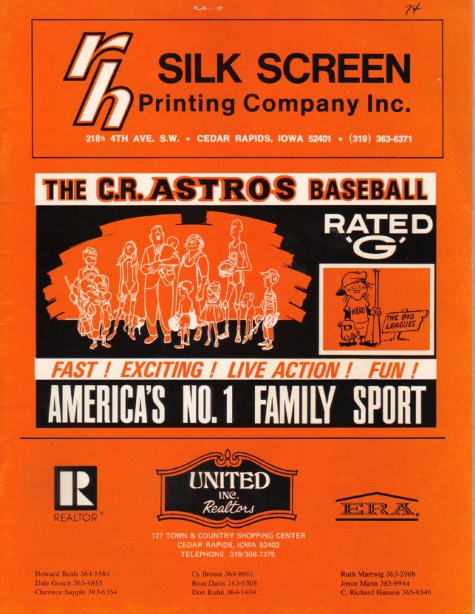 1974 Cedar Rapids Astros Game Program